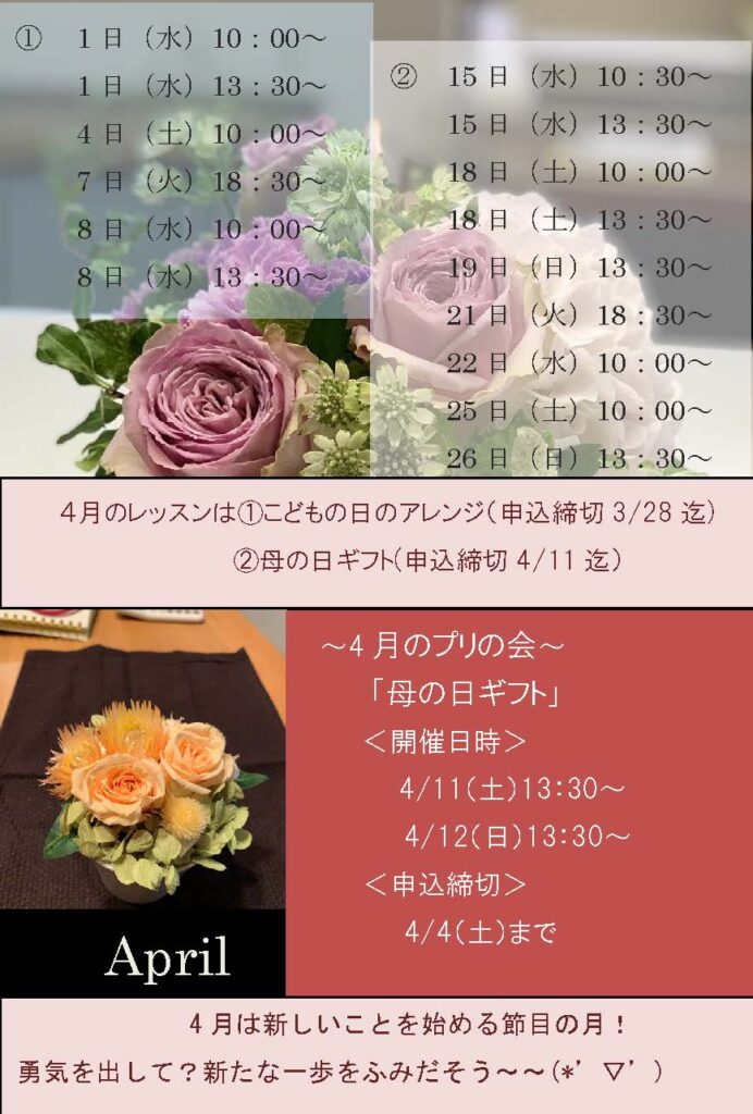 「4月のレッスン」のお知らせ